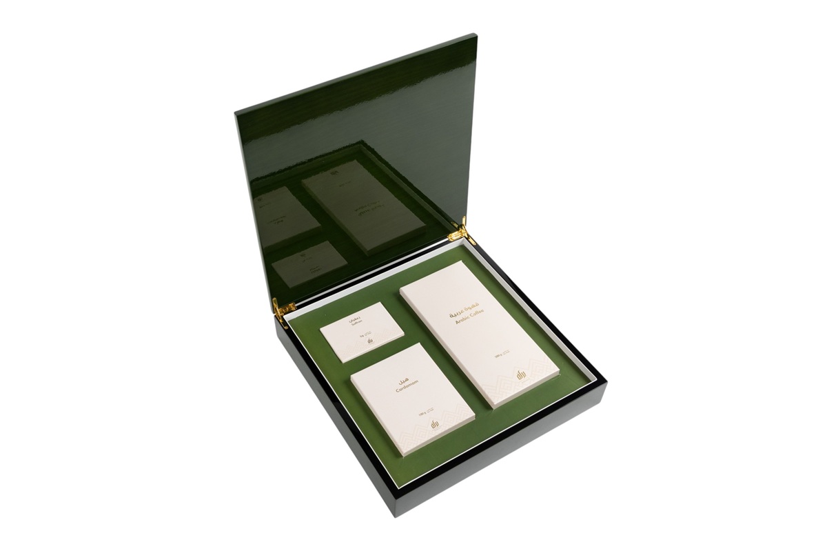 A gift of pure sophistication. The VIP Green Wooden Box contains the finest quality of coffee, cardamom, and saffron.
