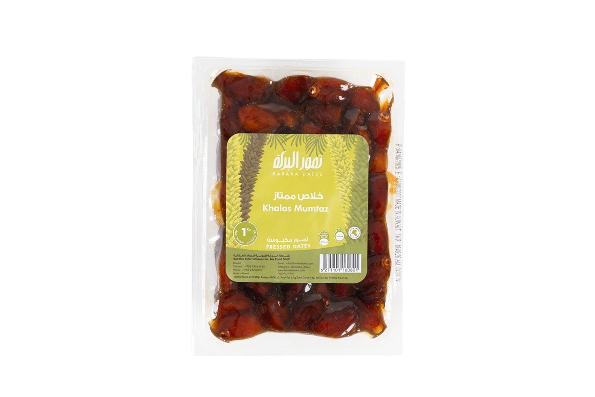 تمر خلاص ممتاز مكبوس هو أحد أفضل أنواع تمر الخلاص المتوفرة، يتميّز بحباته الكبيرة والطريّة والمتناسقة، ولونه الذهبي الجذاب، مع حلاوة طبيعية متوازنة وطعم غني يميل إلى النكهة الكراميلية الخفيفة.